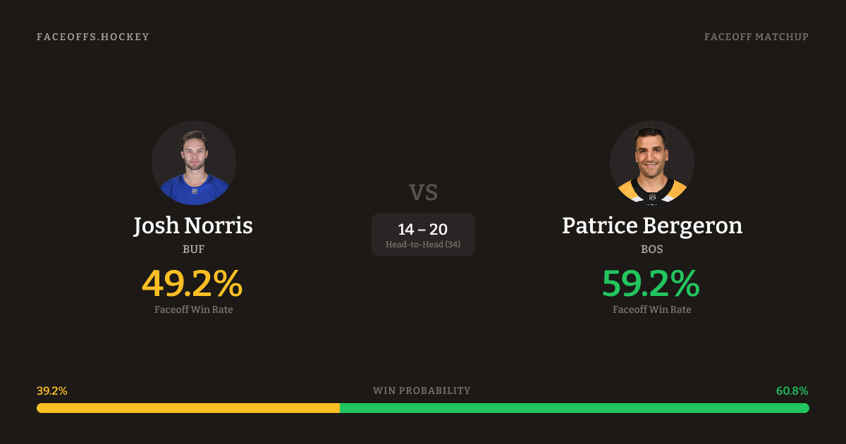 Josh Norris vs Patrice Bergeron — Faceoff Head-to-Head