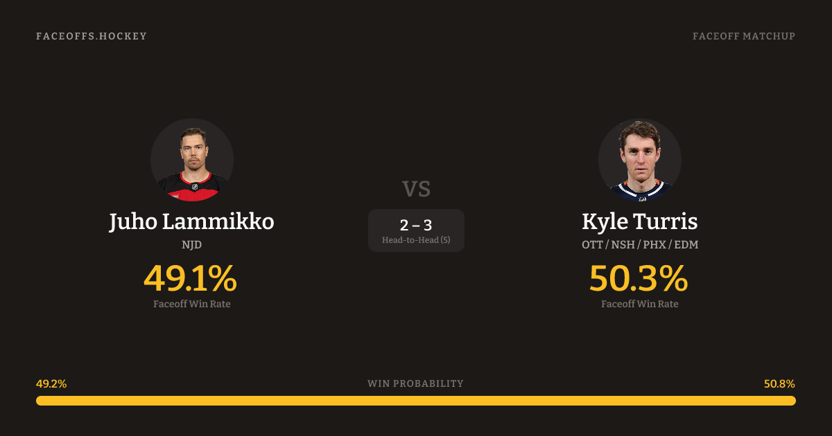 Juho Lammikko vs Kyle Turris — Faceoff Head-to-Head
