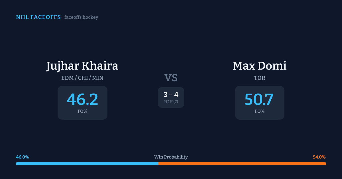 Jujhar Khaira vs Max Domi — Faceoff Head-to-Head