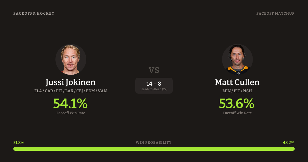 Jussi Jokinen vs Matt Cullen — Faceoff Head-to-Head
