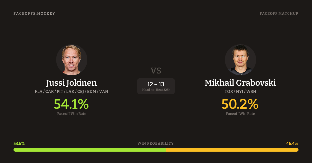 Jussi Jokinen vs Mikhail Grabovski — Faceoff Head-to-Head