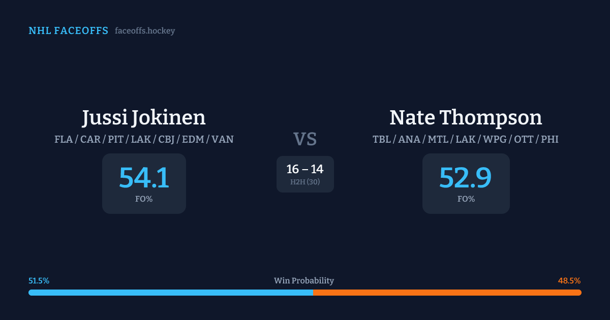 Jussi Jokinen vs Nate Thompson — Faceoff Head-to-Head