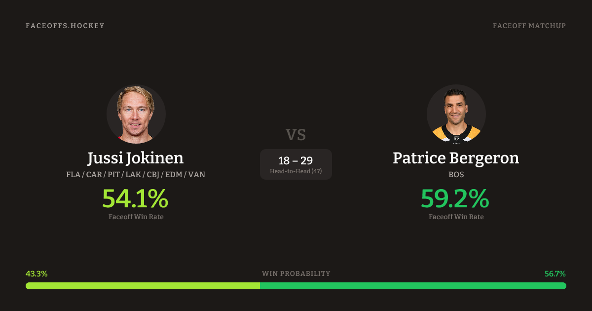 Jussi Jokinen vs Patrice Bergeron — Faceoff Head-to-Head