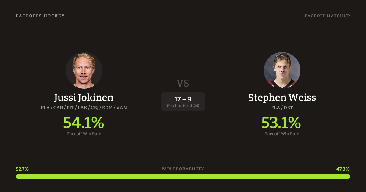 Jussi Jokinen vs Stephen Weiss — Faceoff Head-to-Head