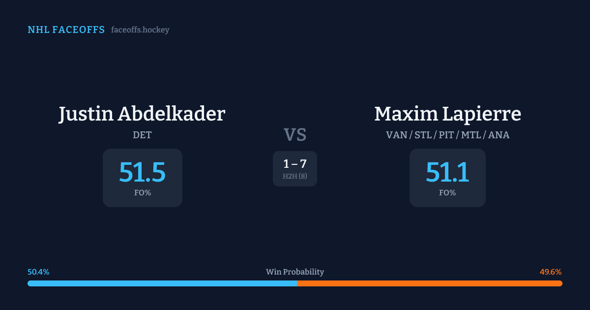 Justin Abdelkader vs Maxim Lapierre — Faceoff Head-to-Head