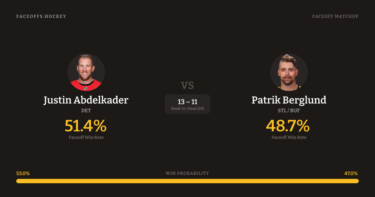 Justin Abdelkader vs Patrik Berglund — Faceoff Head-to-Head
