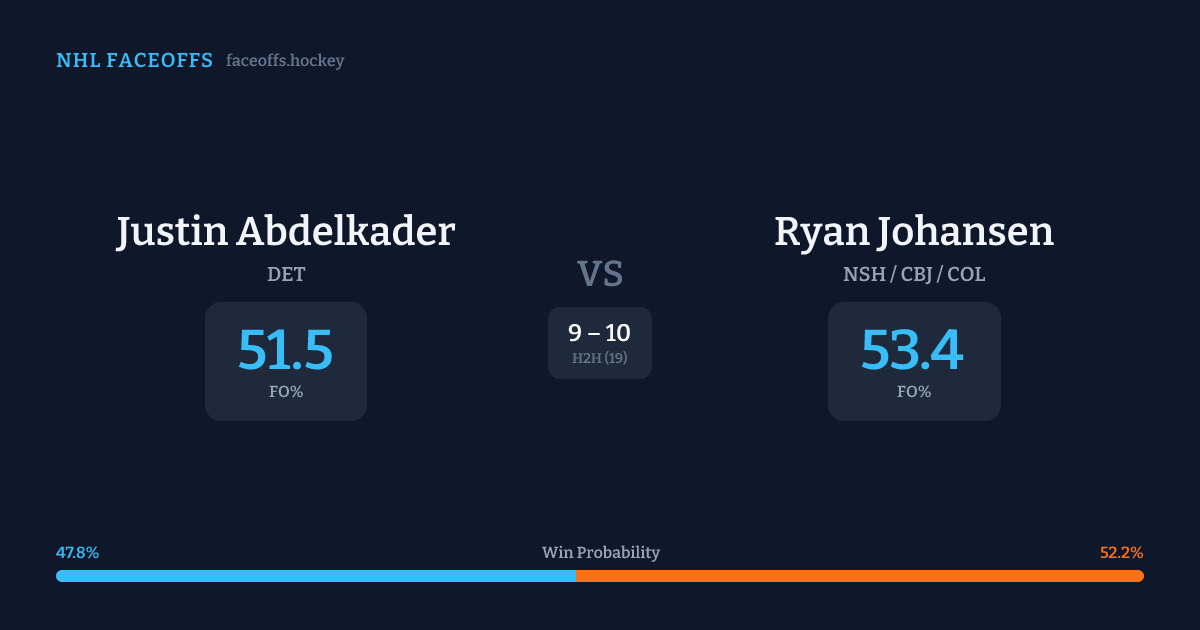 Justin Abdelkader vs Ryan Johansen — Faceoff Head-to-Head