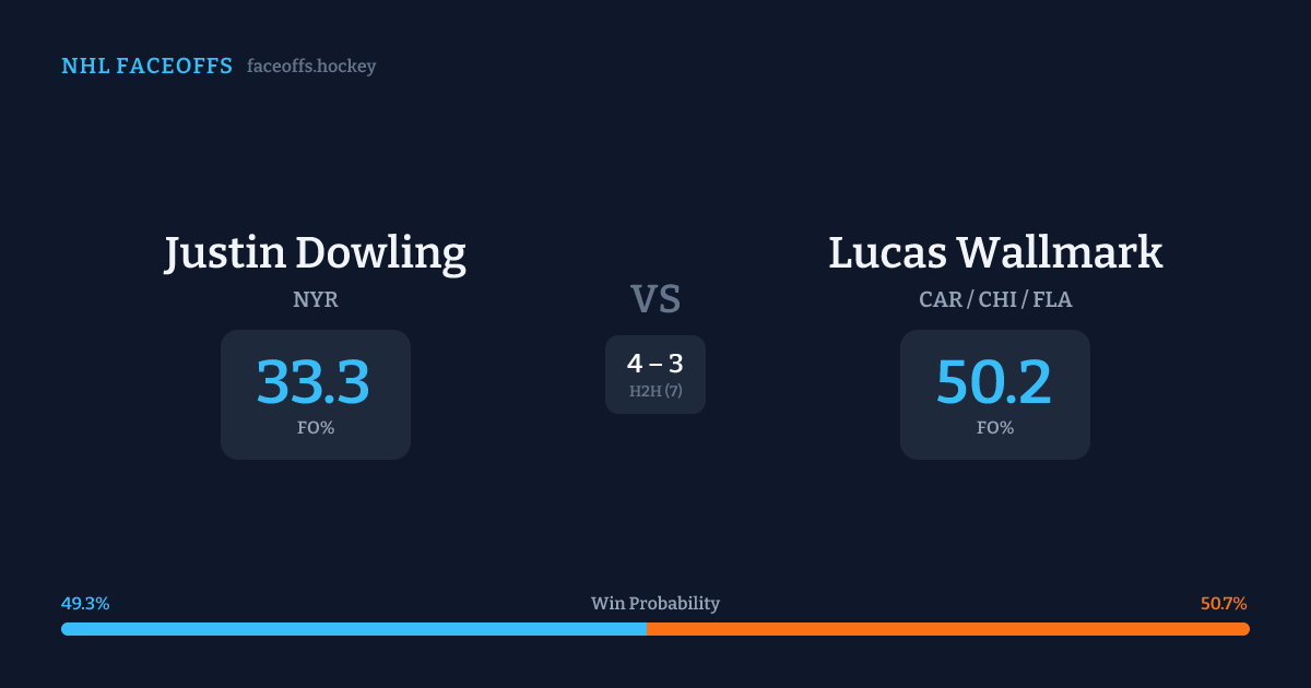 Justin Dowling vs Lucas Wallmark — Faceoff Head-to-Head