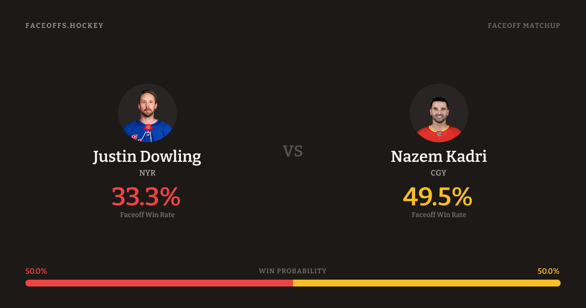 Justin Dowling vs Nazem Kadri — Faceoff Head-to-Head