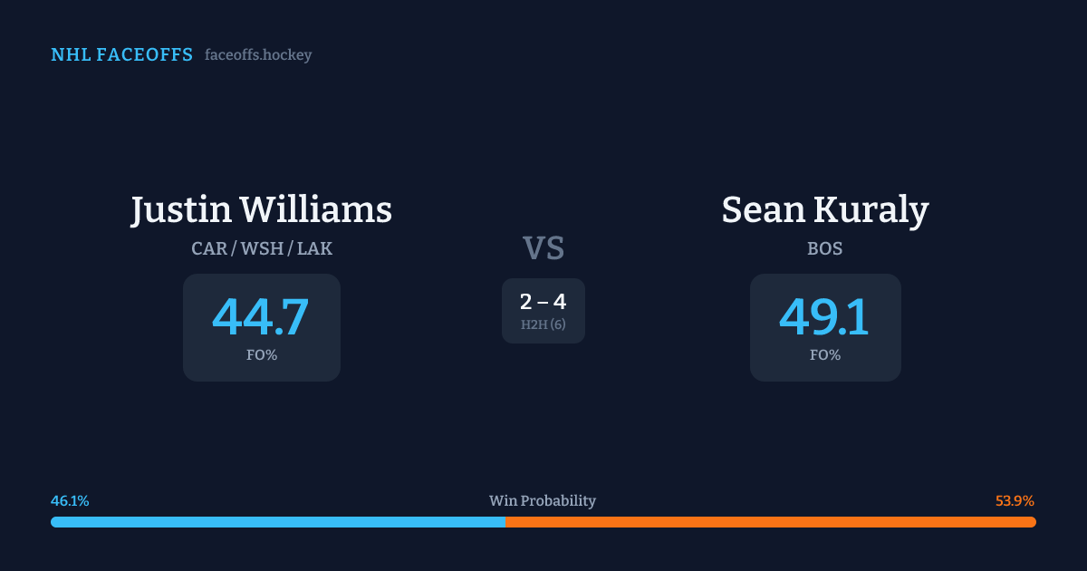 Justin Williams vs Sean Kuraly — Faceoff Head-to-Head