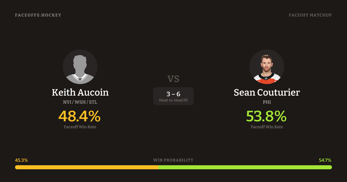 Keith Aucoin vs Sean Couturier — Faceoff Head-to-Head