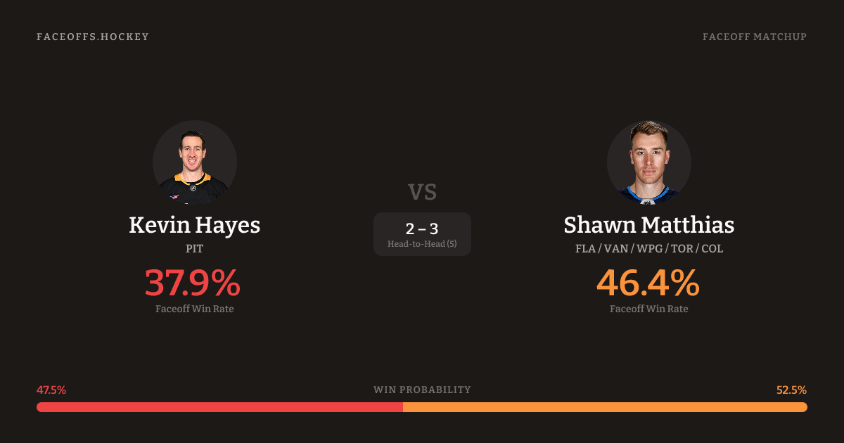 Kevin Hayes vs Shawn Matthias — Faceoff Head-to-Head