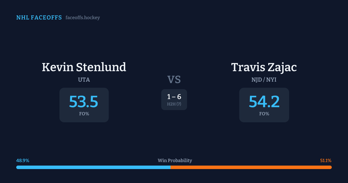 Kevin Stenlund vs Travis Zajac — Faceoff Head-to-Head