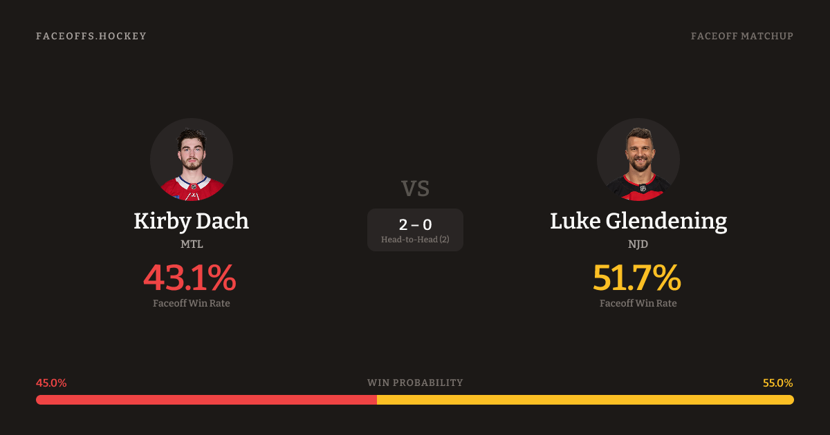 Kirby Dach vs Luke Glendening — Faceoff Head-to-Head