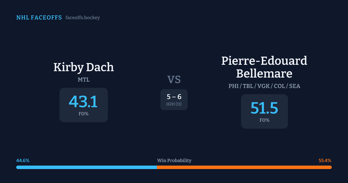 Kirby Dach vs Pierre-Edouard Bellemare — Faceoff Head-to-Head