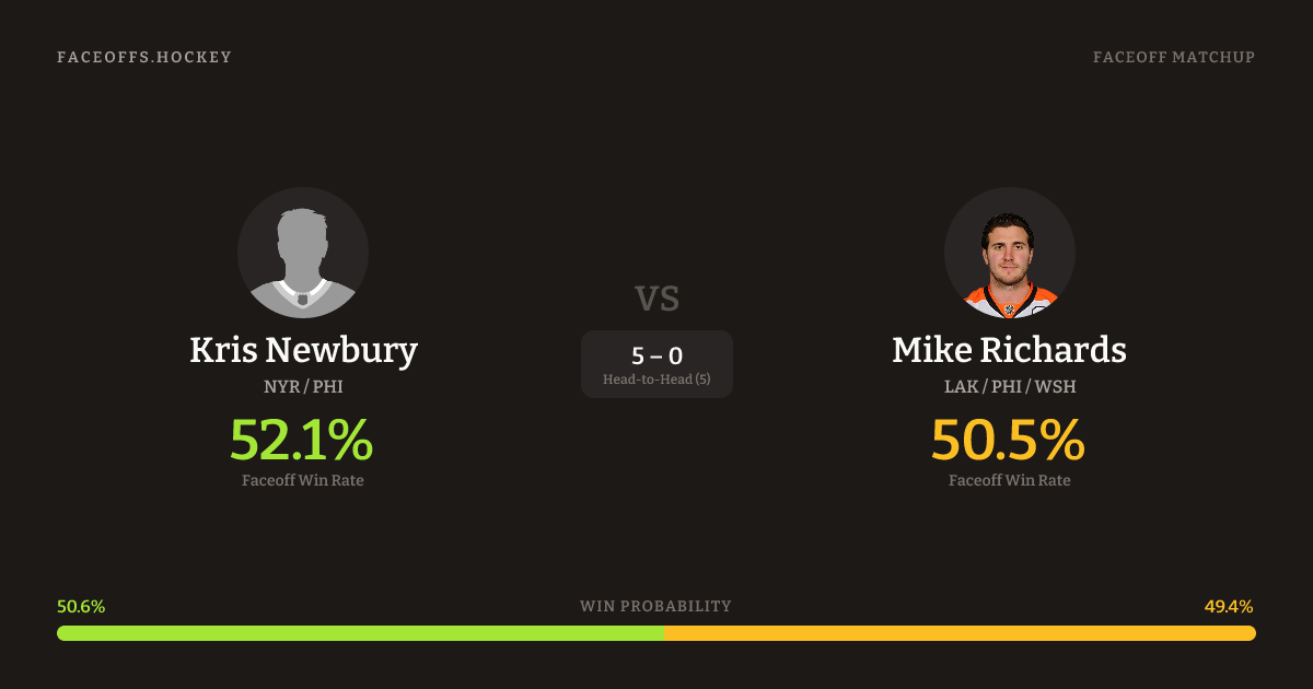 Kris Newbury vs Mike Richards — Faceoff Head-to-Head