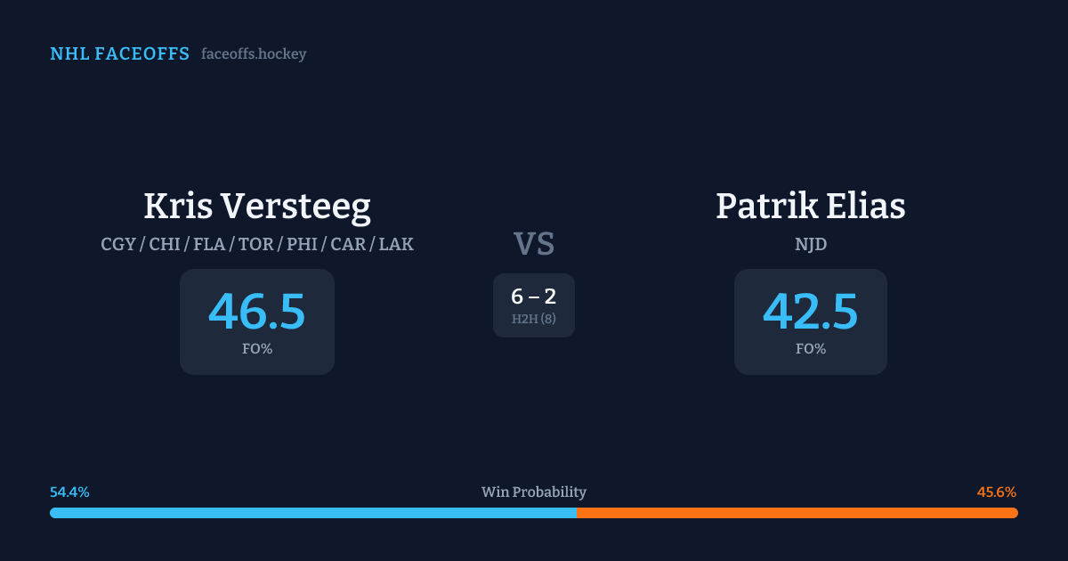 Kris Versteeg vs Patrik Elias — Faceoff Head-to-Head