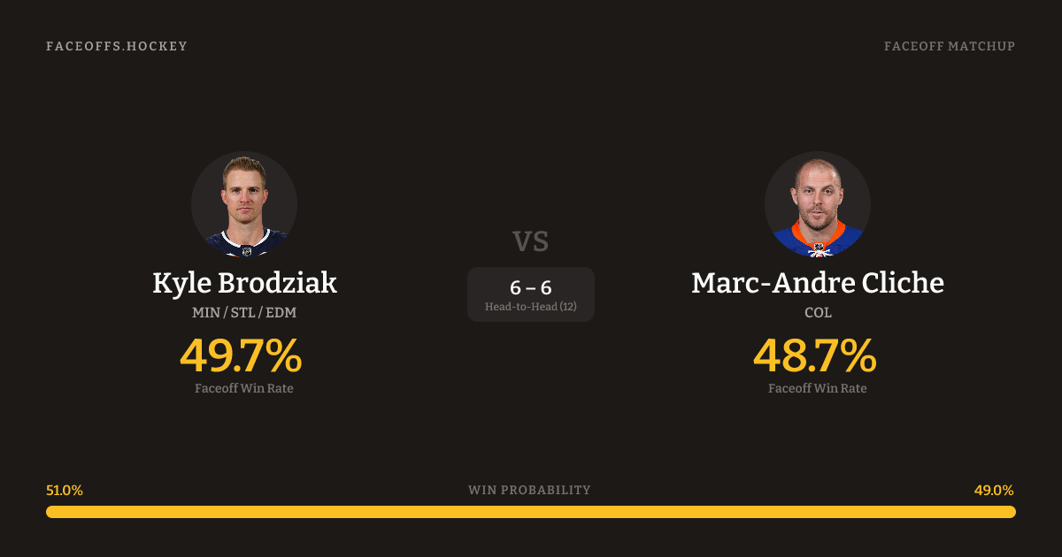 Kyle Brodziak vs Marc-Andre Cliche — Faceoff Head-to-Head