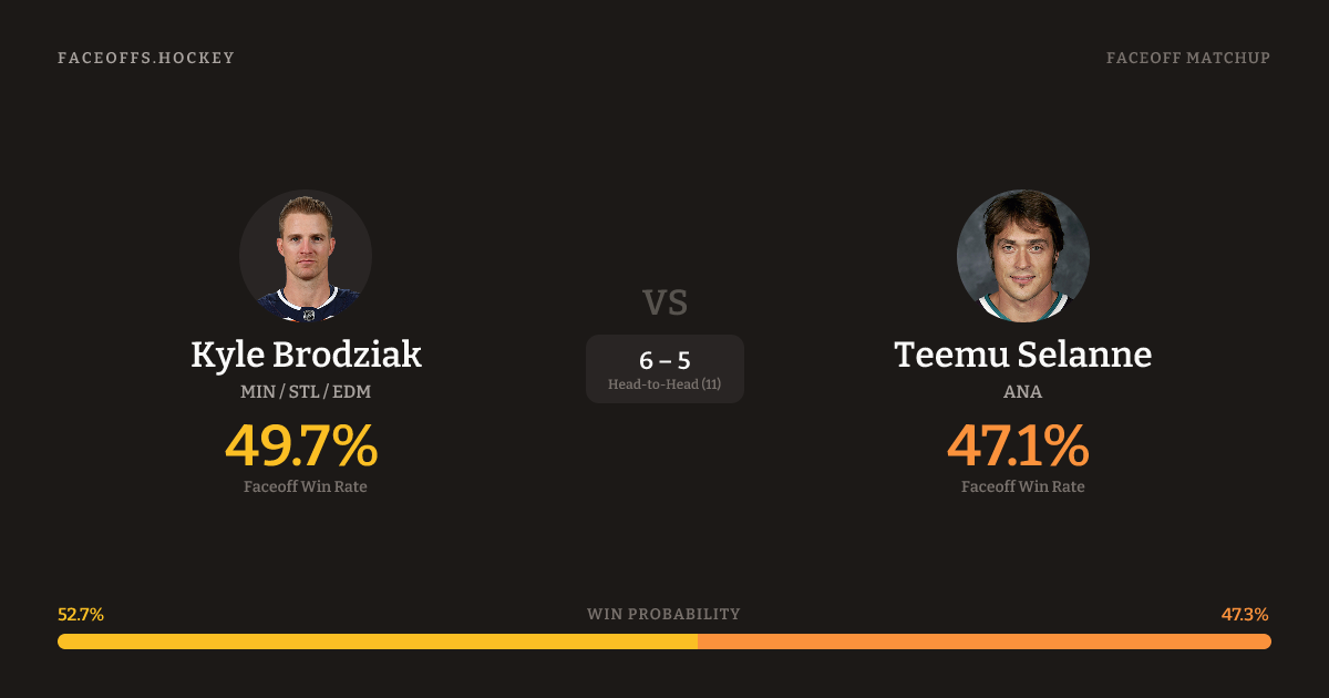 Kyle Brodziak vs Teemu Selanne — Faceoff Head-to-Head