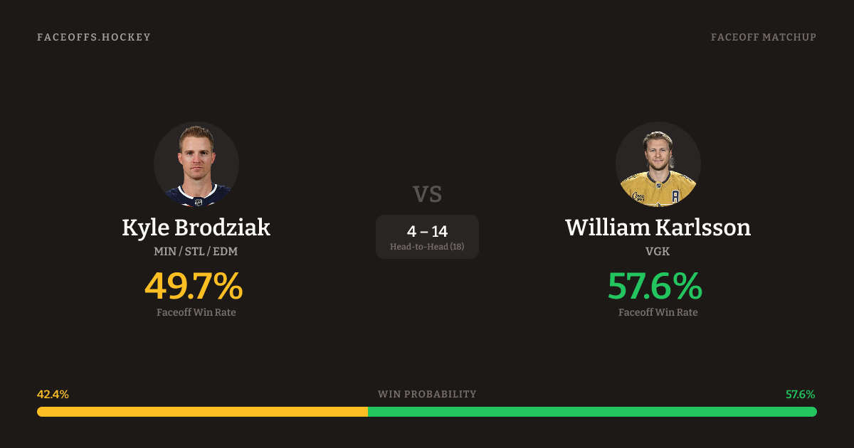Kyle Brodziak vs William Karlsson — Faceoff Head-to-Head