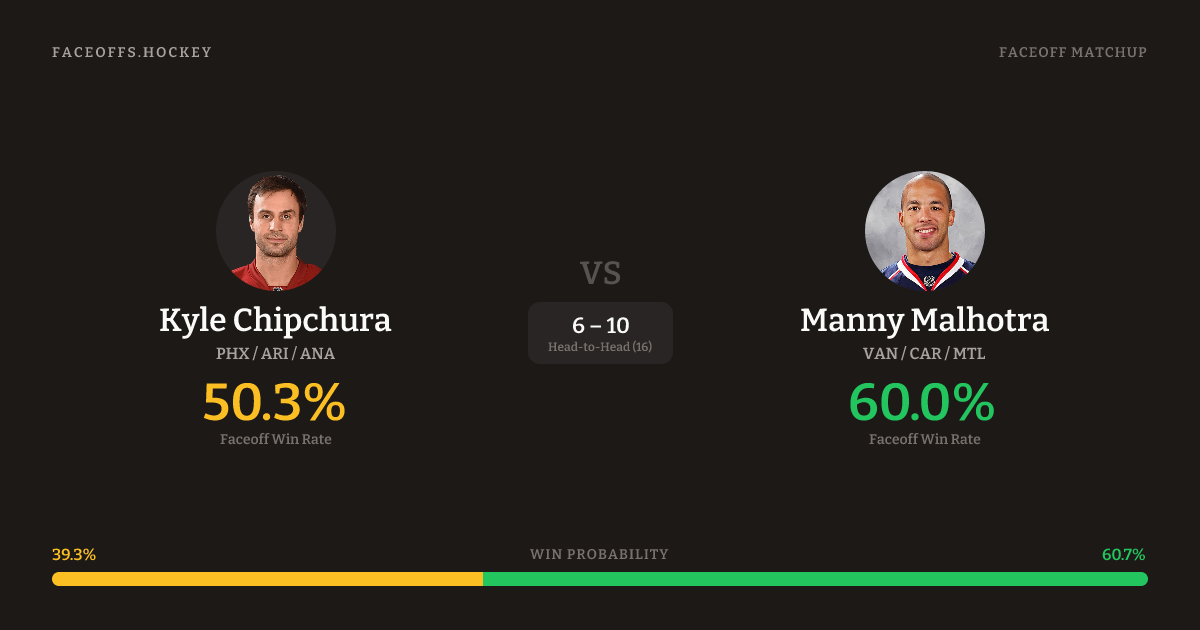 Kyle Chipchura vs Manny Malhotra — Faceoff Head-to-Head
