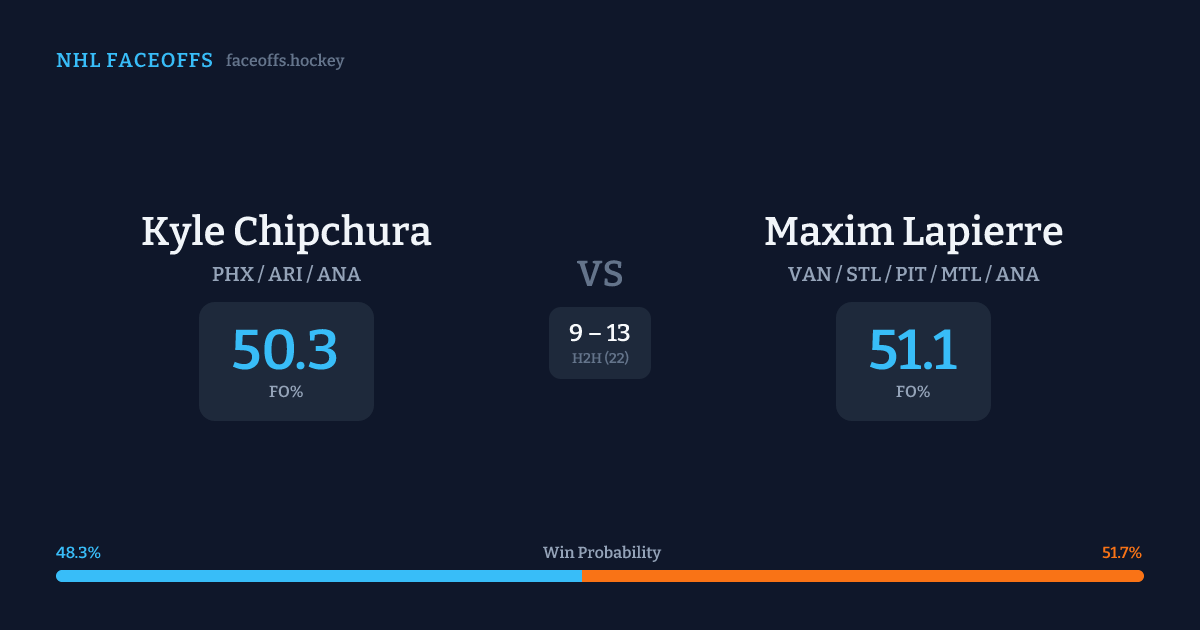 Kyle Chipchura vs Maxim Lapierre — Faceoff Head-to-Head