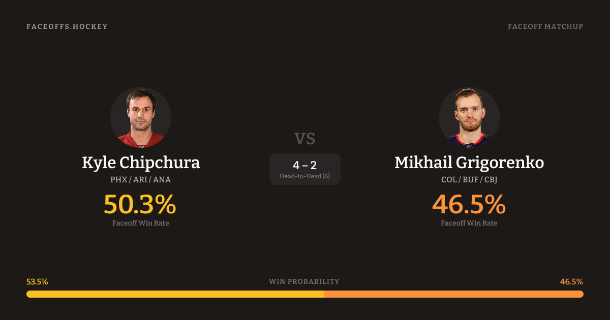 Kyle Chipchura vs Mikhail Grigorenko — Faceoff Head-to-Head