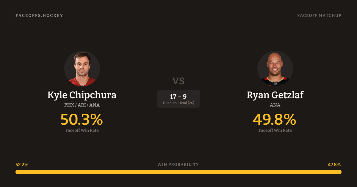 Kyle Chipchura vs Ryan Getzlaf — Faceoff Head-to-Head
