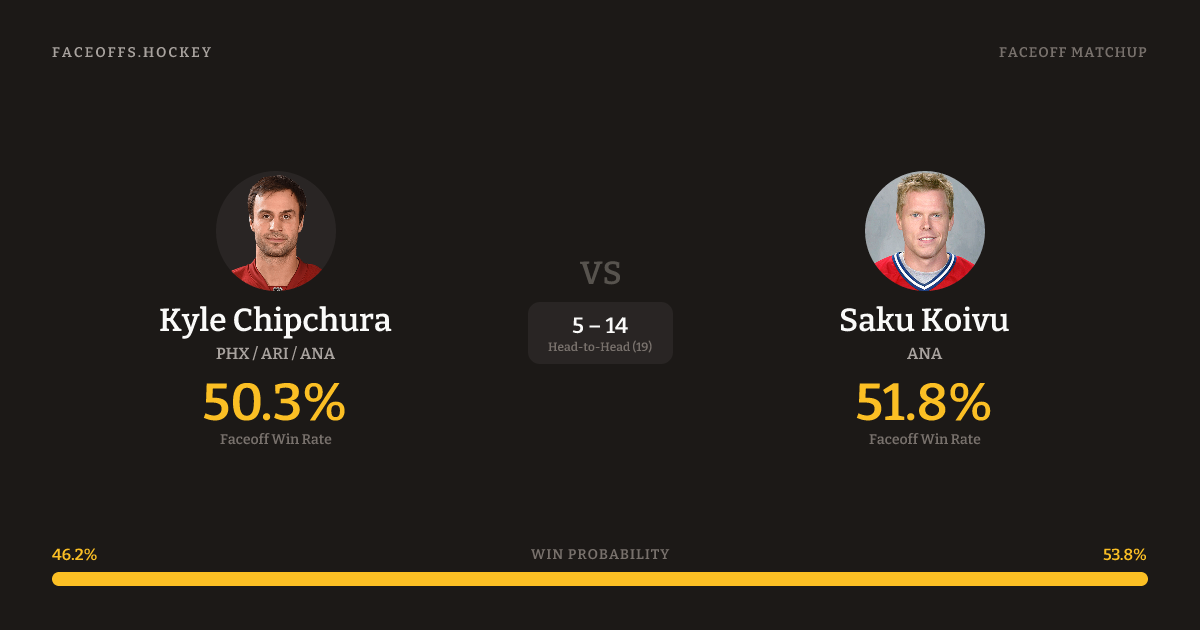 Kyle Chipchura vs Saku Koivu — Faceoff Head-to-Head