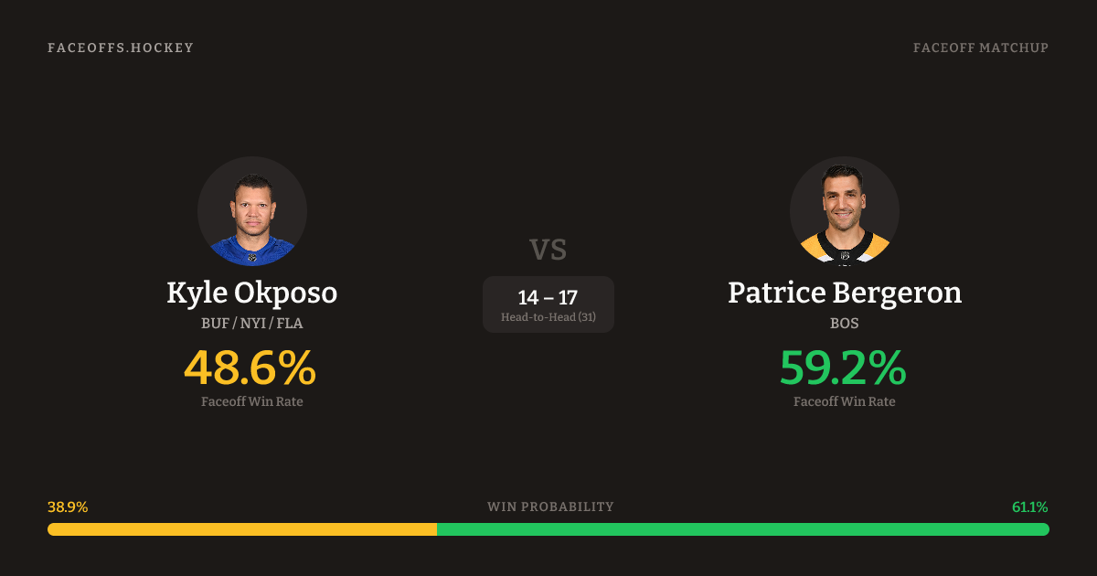 Kyle Okposo vs Patrice Bergeron — Faceoff Head-to-Head