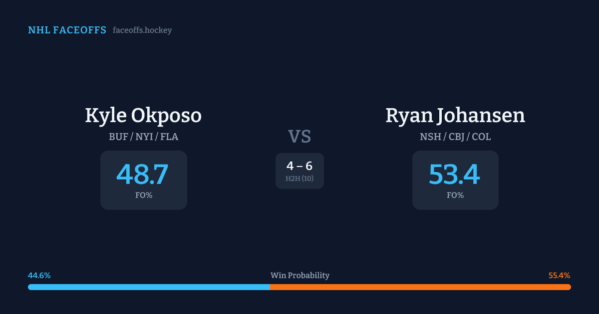 Kyle Okposo vs Ryan Johansen — Faceoff Head-to-Head