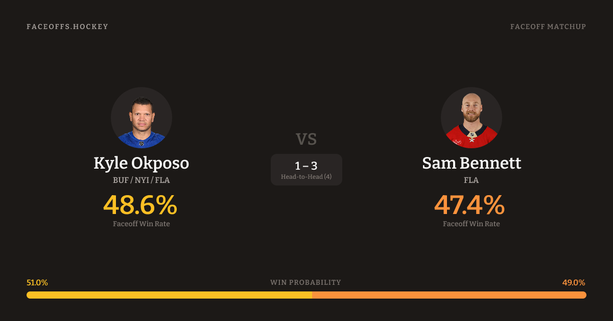 Kyle Okposo vs Sam Bennett — Faceoff Head-to-Head