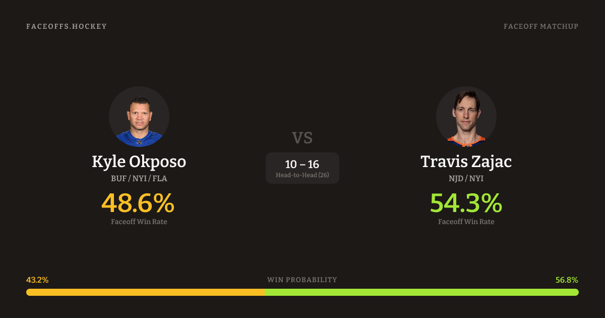 Kyle Okposo vs Travis Zajac — Faceoff Head-to-Head