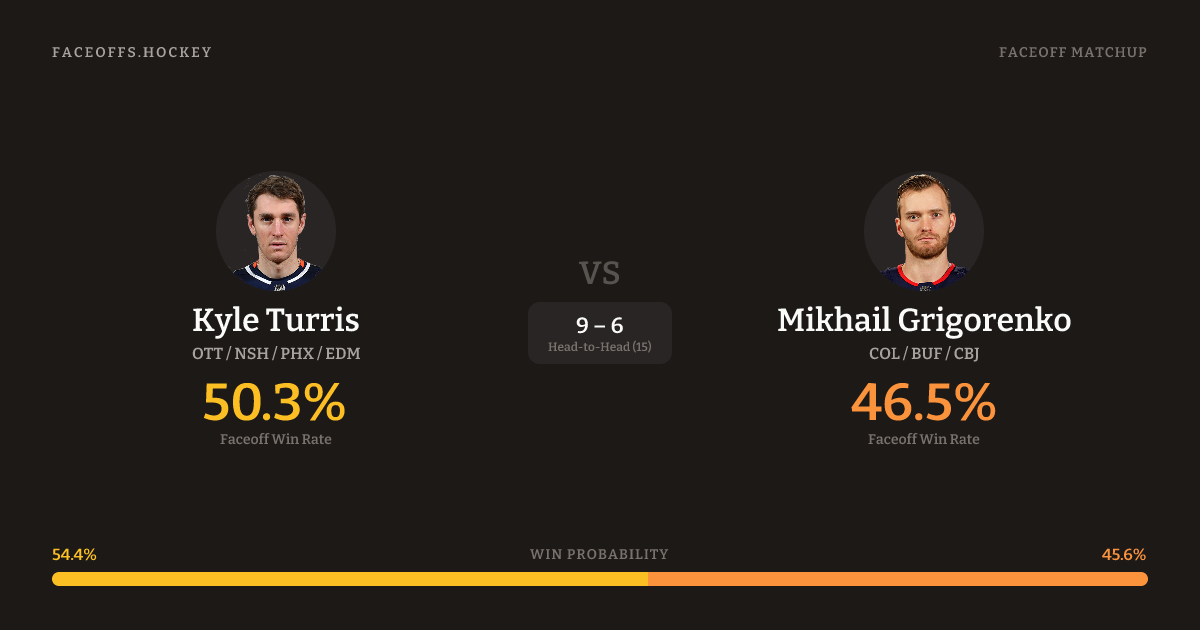 Kyle Turris vs Mikhail Grigorenko — Faceoff Head-to-Head