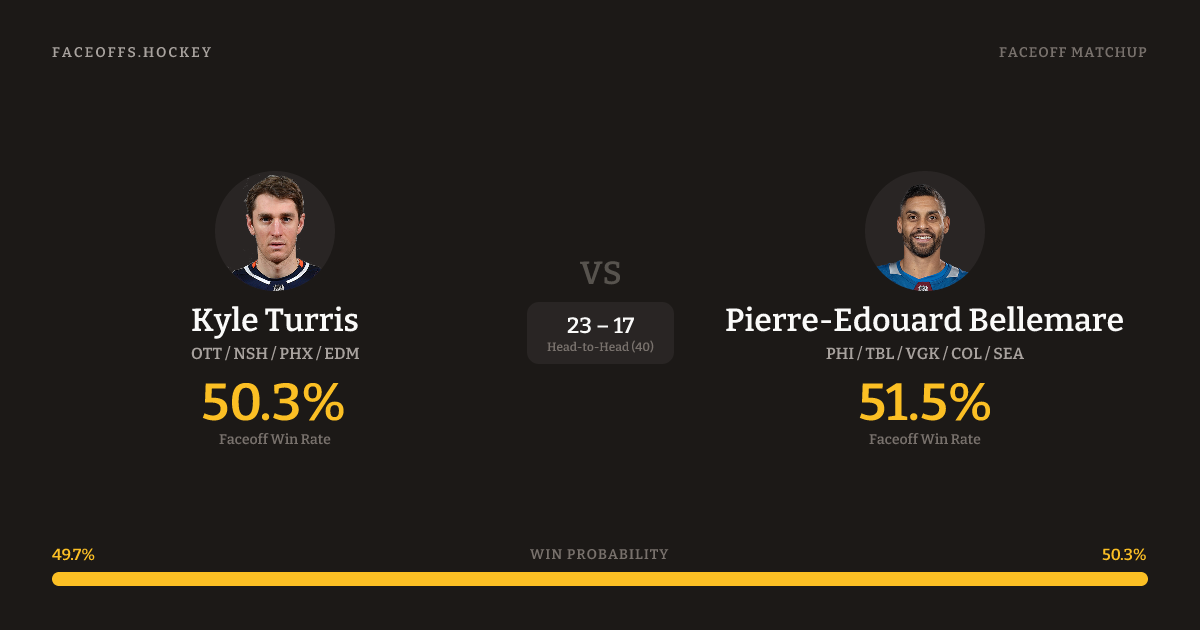 Kyle Turris vs Pierre-Edouard Bellemare — Faceoff Head-to-Head