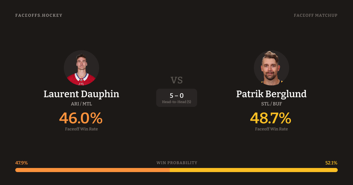 Laurent Dauphin vs Patrik Berglund — Faceoff Head-to-Head