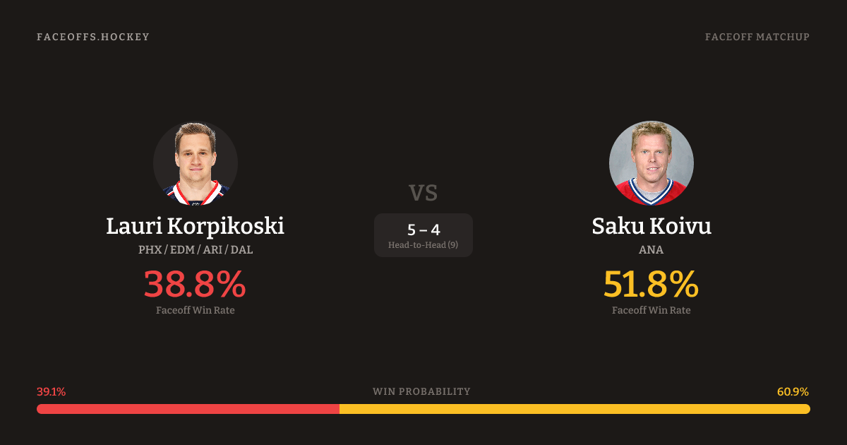 Lauri Korpikoski vs Saku Koivu — Faceoff Head-to-Head