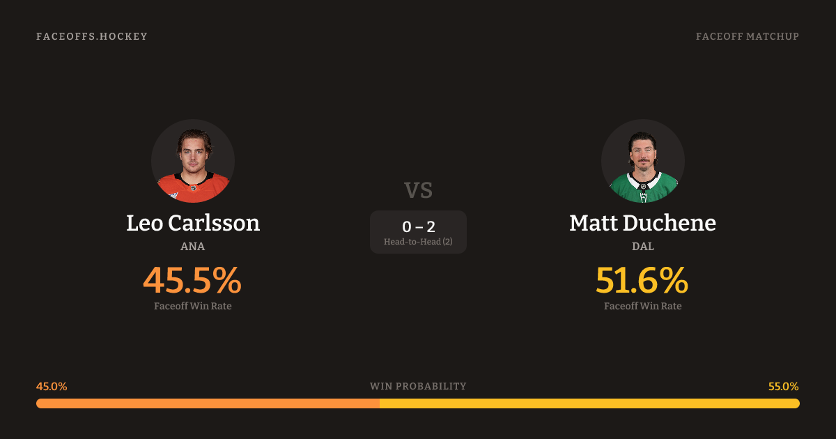 Leo Carlsson vs Matt Duchene — Faceoff Head-to-Head