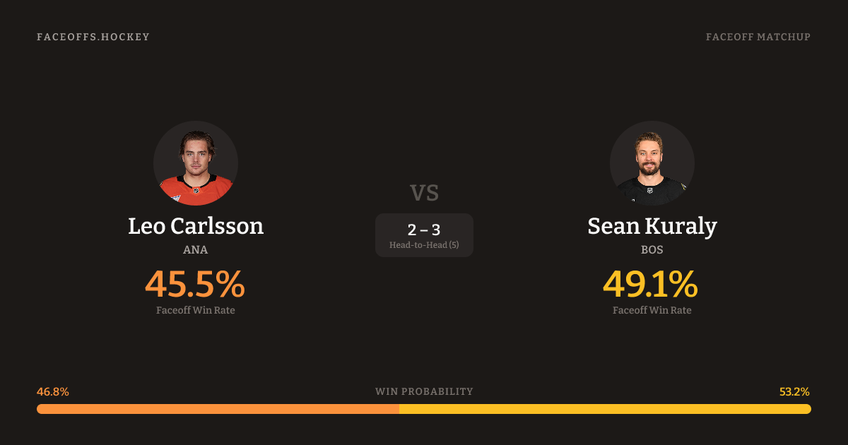 Leo Carlsson vs Sean Kuraly — Faceoff Head-to-Head