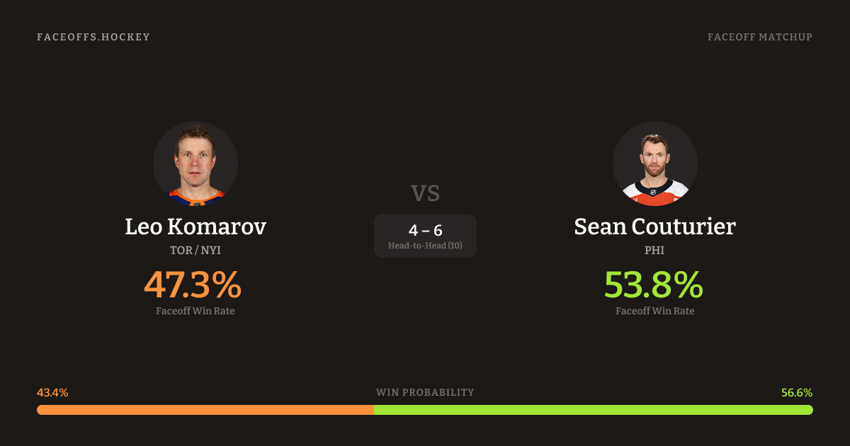 Leo Komarov vs Sean Couturier — Faceoff Head-to-Head