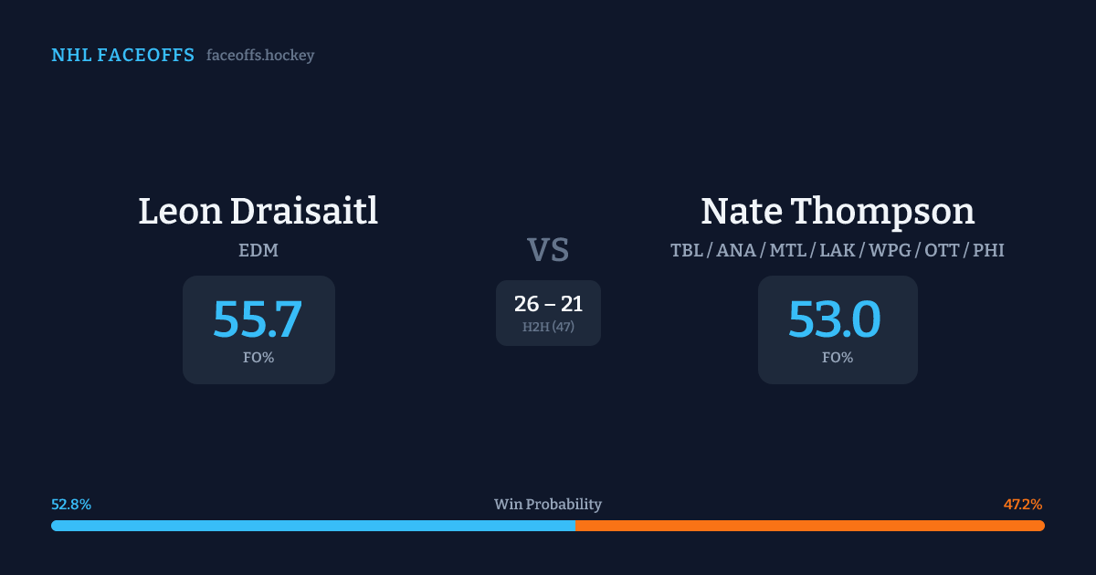 Leon Draisaitl vs Nate Thompson — Faceoff Head-to-Head