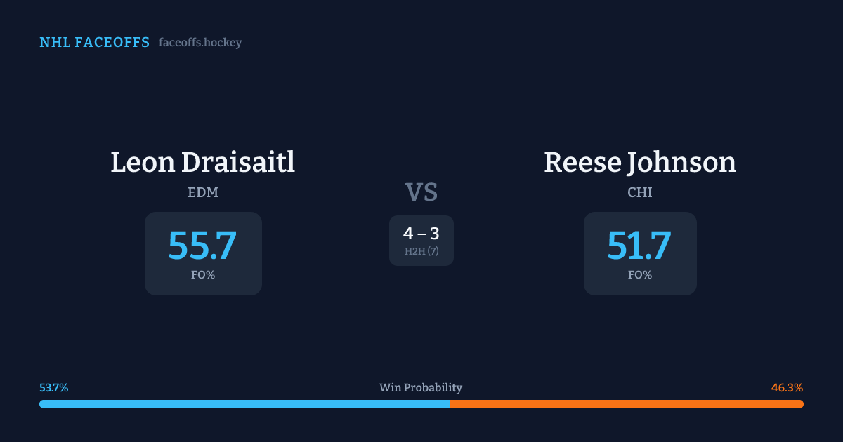Leon Draisaitl vs Reese Johnson — Faceoff Head-to-Head