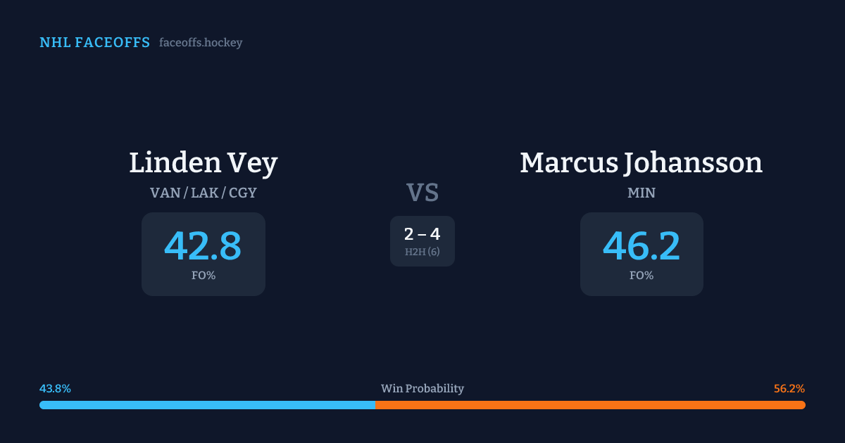 Linden Vey vs Marcus Johansson — Faceoff Head-to-Head
