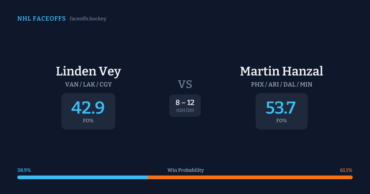Linden Vey vs Martin Hanzal — Faceoff Head-to-Head