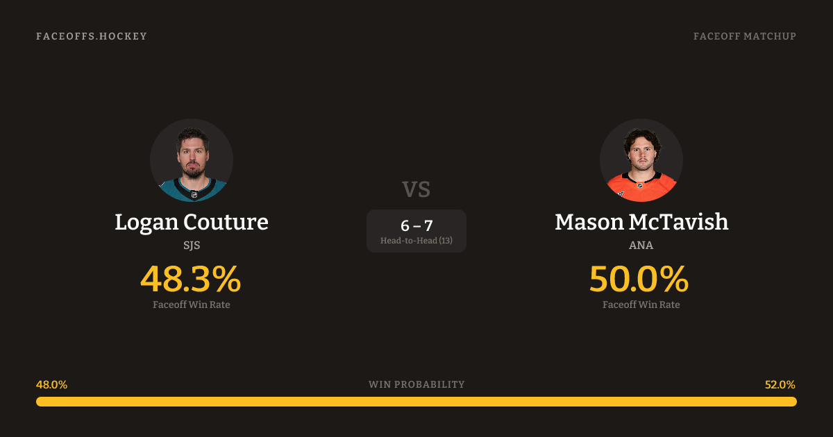Logan Couture vs Mason McTavish — Faceoff Head-to-Head