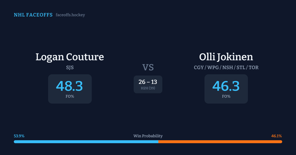 Logan Couture vs Olli Jokinen — Faceoff Head-to-Head