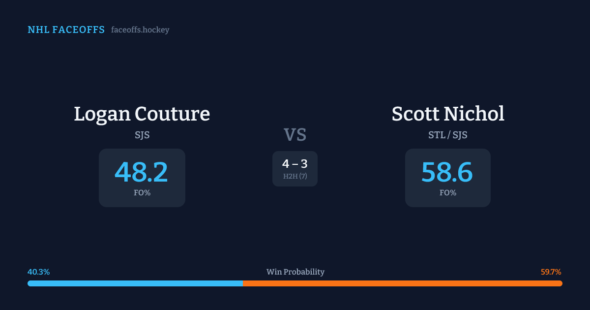 Logan Couture vs Scott Nichol — Faceoff Head-to-Head