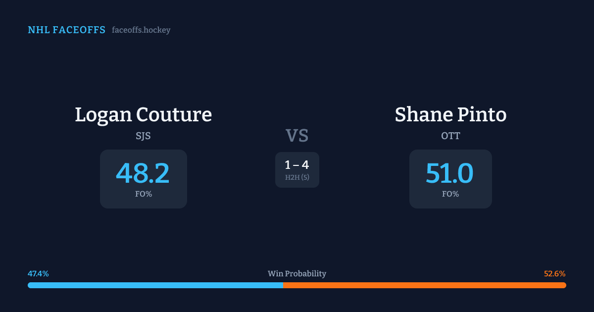 Logan Couture vs Shane Pinto — Faceoff Head-to-Head