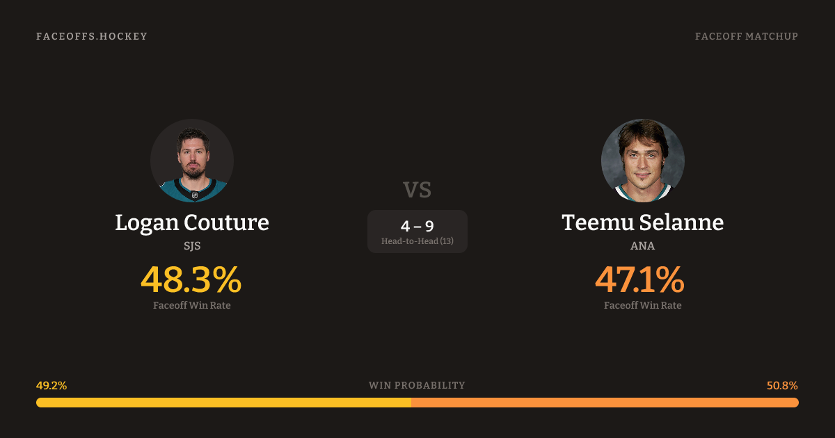 Logan Couture vs Teemu Selanne — Faceoff Head-to-Head