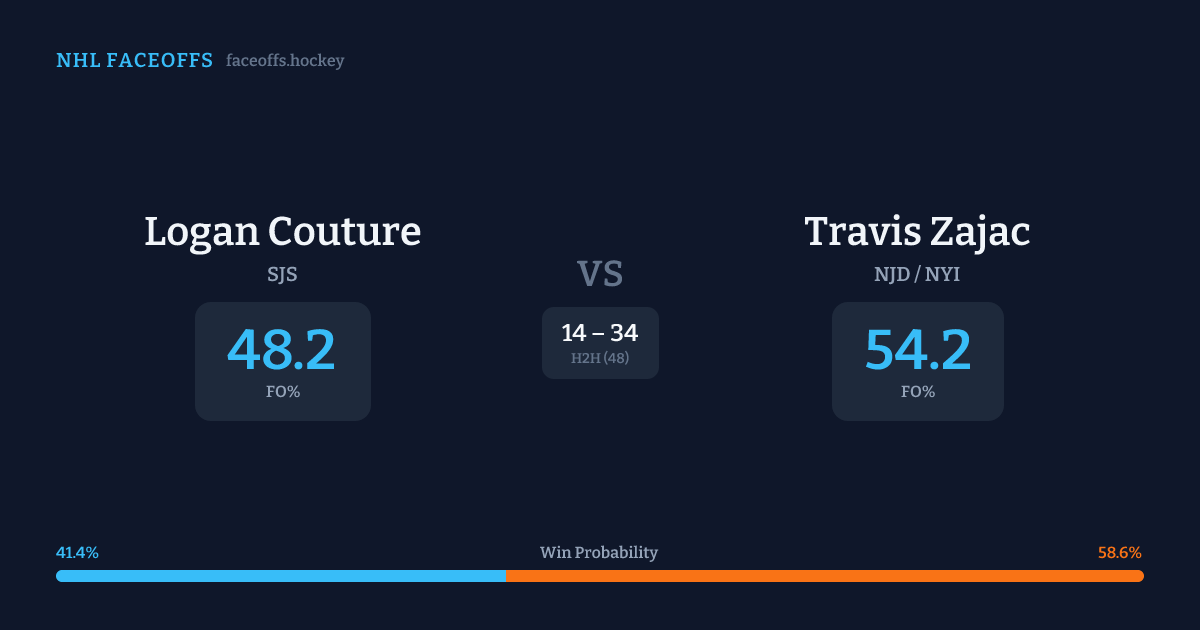 Logan Couture vs Travis Zajac — Faceoff Head-to-Head